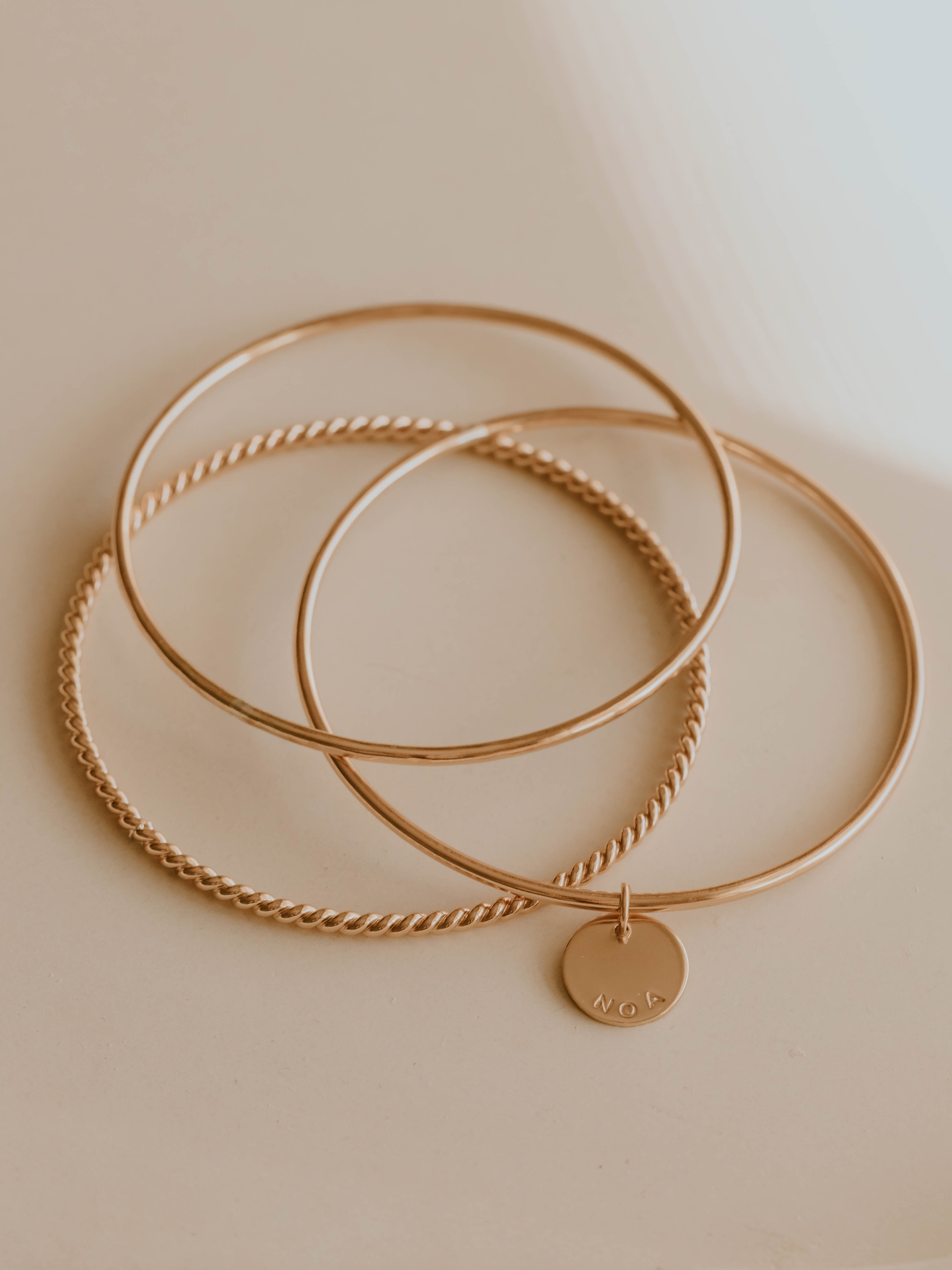 Smooth or hammered shiny finish in our thicker bangle style - Choose from a smooth or hammered bangle finish