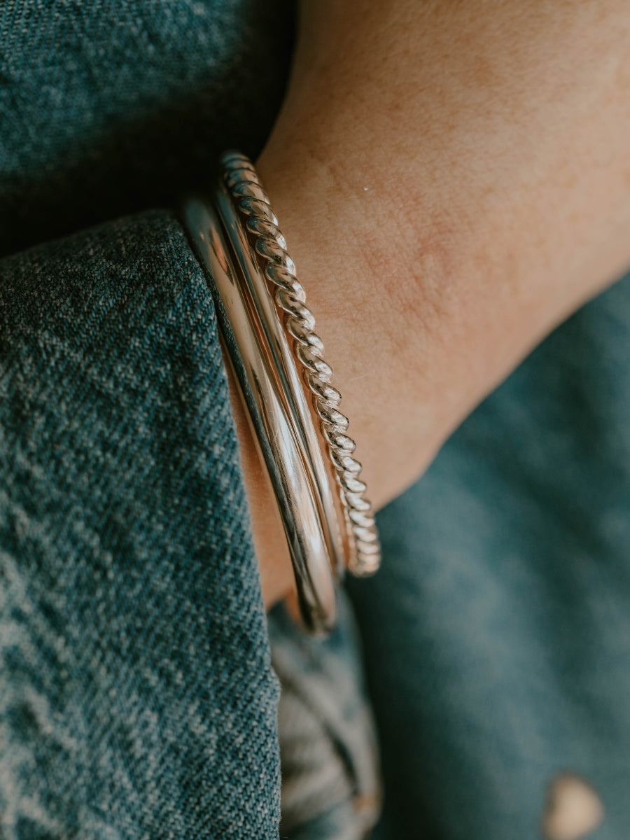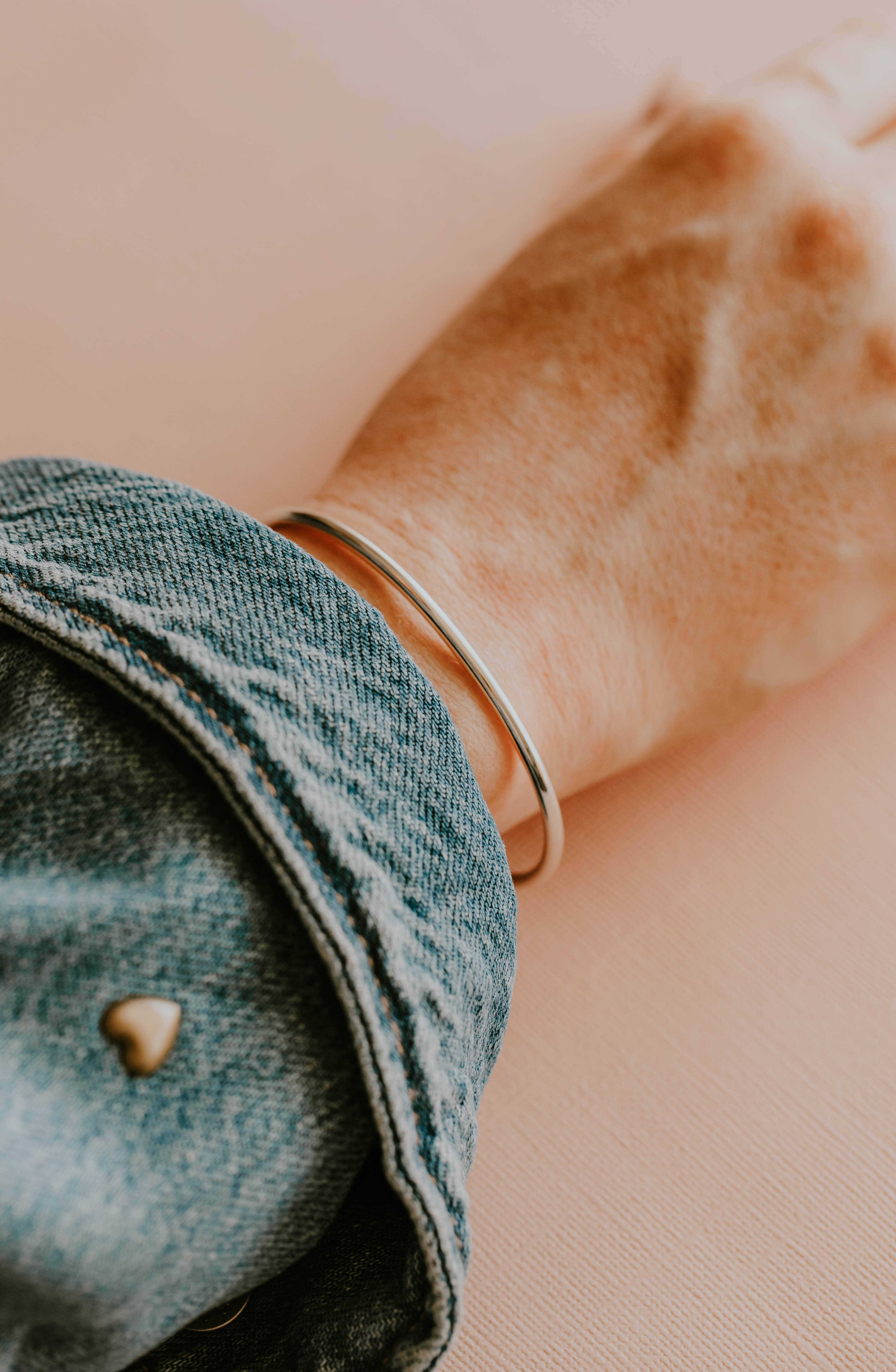 Bracelets can be worn at all times (shower, sweat, and swim in them if you want!), and they can be removed daily, but they should NOT be opened and closed over and over again with force to make the ends meet, otherwise you are at risk of misshaping your cuffs over time. There should be a gap at all times!